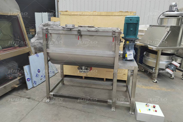 卧式螺带混合机由U形筒体、螺带搅拌叶片和传动部件组成;螺带状叶片一般做成双层,工作时外层螺带将物料从两侧向中央汇集,内层螺带将物料从中央向两侧输送,形成对流混合。搅拌部件还可以制作成桨叶式或增加飞刀,适应不同的物料。筒盖可做成拱形或全开式,拱形可以承压,全开式方便清洗设备内部。