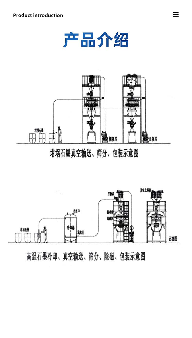 电池材料在坩埚自动填充加料过程中减少了粉尘的污染,基本能实现高密度填充,让相同容积的坩埚能装填更多石墨粉料,减少了因物料比重小的问题而导致坩埚装料少、装料不密实的现象。适用于填充正负极材料碳化与石墨化环节的坩埚填充。