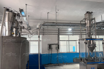4.采用自动投料,高精度的除尘装置和密封管道输送方式,做到做到投料无粉尘,输送无泄漏,保证车间整洁。同时提高工作效率和工厂配置,根据客户现场灵活布置管道,工厂设备配置合理,效率高。