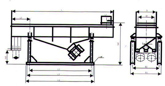 直线筛是双振动电机驱动,当两台振动电机做同步、反向运转时,其偏心块所产生的激振力在平行于电机轴的方向相互氏消,在垂直于电机轴的方向叠为一合力,因此物料在直线筛机上的运动轨迹为直线向前做抛物线运动,两电机轴相对筛面有一倾角在激振力和物料自重力的合力作用下物料在筛面上被抛起跳跃式向前作直线运动,从而达到对物料进行筛选和分级的目的。