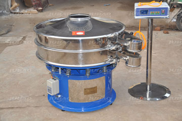 超声波振动筛是在普通旋振筛的基础上换装了超声波网架,将220V、50Hz或110V、60Hz电能转化为18KHz的高频电能,输入超声换能器,将其变成18KHz机械振动,并传递给筛面,从而达到筛分和清网的目的。超声波振动筛能够有效解决普通振动筛难以筛分的物料,如:高静电性、高精细性、强吸附性、易团聚性、高密度性、比重轻的各种物料等等,提高筛分效率和筛分质量。
