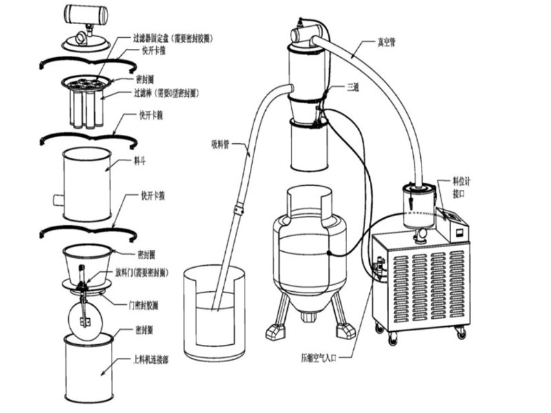 电动式真空上料机主要由电动机、真空泵、输送管道、吸头等部件组成。通过控制电动机的启停、速度等参数,可以实现对物料的输送量和速度进行调节,同时,真空泵在吸取物料的同时,也能够起到防止氧化、降低粉尘污染等作用。输送管道和吸头则是实现物料传输的关键组件,根据不同的物料特性选择不同的材质和结构,以保证输送的稳定性和卫生性。